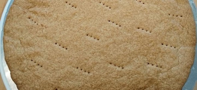 Er muss hin und wieder gewendet und wieder bemehlt werden- Der Teig sollte etwa 3-4 mm dick sein, also nicht zu dick und nicht so dünn, dass er droht zu reißen. - Den Teig mit der Form abzirkeln, abteilen oder entlang der Form mit einem Messer schneiden und den Teig in eine mit Backpapier ausgelegte Form legen. Mit der Gabel ein paar Mal einstechen, sodass er Luft bekommt. In den Kühlschrank für min. 30 min. kalt stellen.